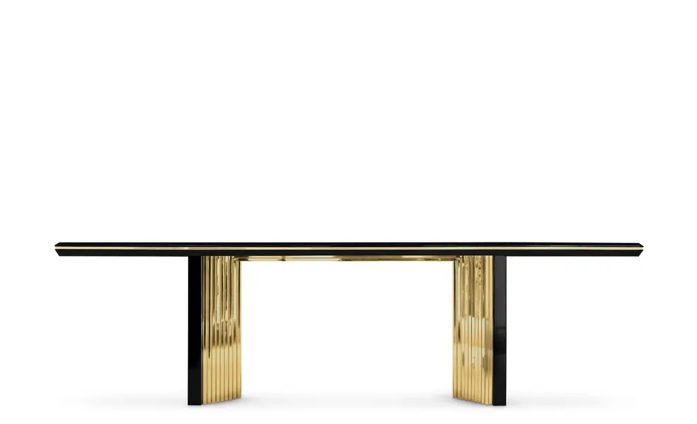 The Beja Dining Table has distinctive details that make a delicate adjustment between, the best hand-worked wood with touches of brass and the warm and golden tones on its polished surface. Created in an outstanding moment of inspiration, this modern luxury dining table makes the perfect center point of any dining setting.